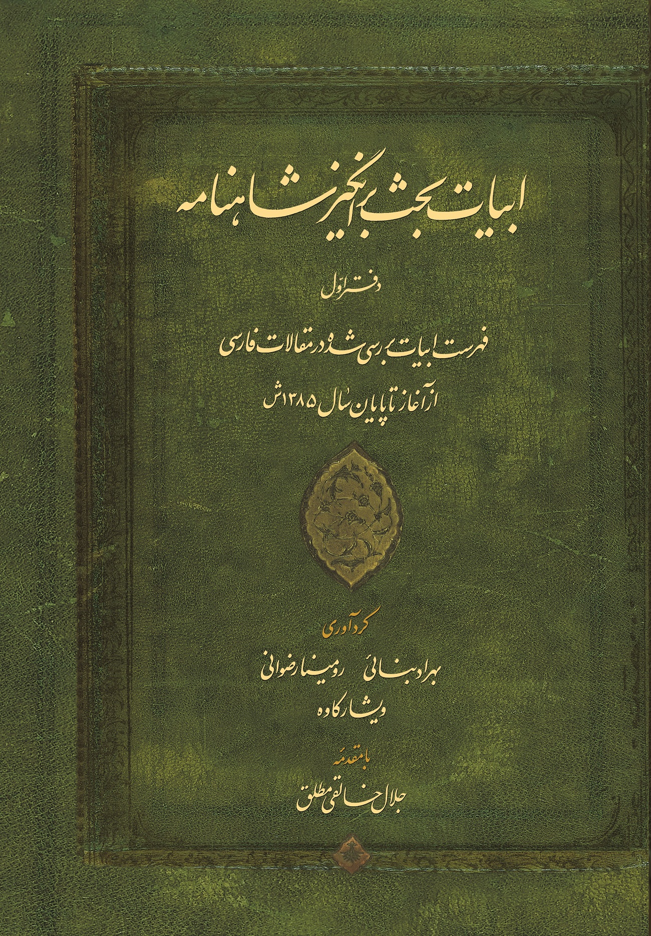 دفتر اول «ابیات بحثبرانگیز شاهنامه» (فهرست ابیات بررسیشده در مقالات فارسی، از آغاز تا پایان سال 1385 ش) با یادداشتی از دکتر جلال خالقی مطلق در ابتدای کتاب منتشر شده است. دکتر خالقی مطلق در این یادداشت نوشته است: