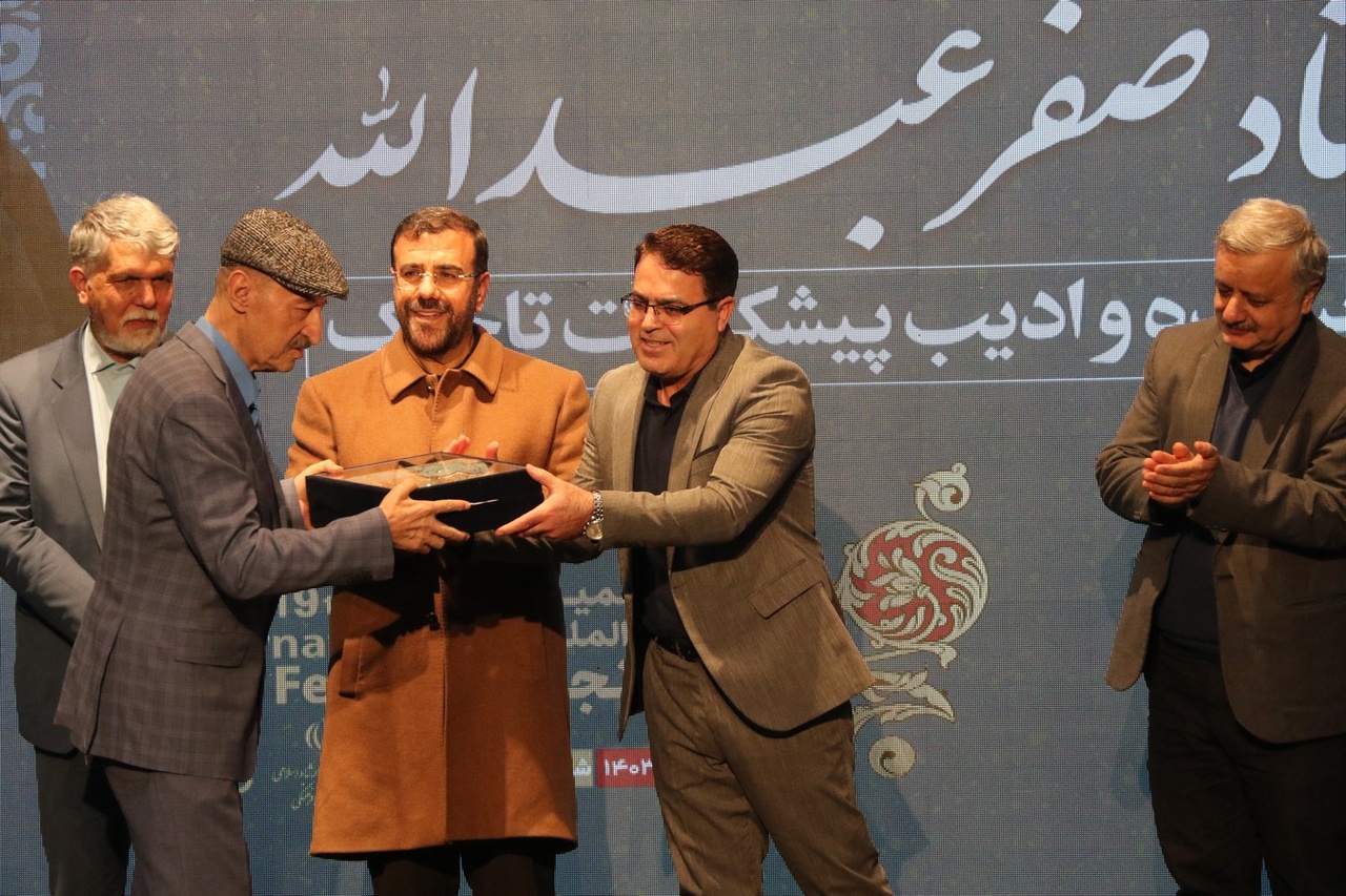 همچنین با حضور سید عباس صالحی وزیر فرهنگ و ارشاد اسلامی، ابراهیم حیدری مدیرعامل خانه کتاب و ادبیات ایران، حسینعلی امیری استاندار فارس و دبیر علمی نوزدهمین جشنواره بینالمللی شعر فجر، آیین تجلیل از استاد صفر عبدالله نویسنده ادیب و پیشکسوت تاجیک، عضو دائم و پیوسته فرهنگستان زبان و ادب فارسی و عبدالعلی دستغیب به عنوان خادم زبان فارسی برگزار شد.