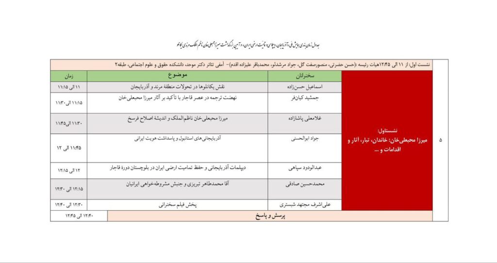 نشست اول (میرزا محبعلیخان: خاندان، تبار، آثار و اقدامات و …) – 11 الی 12:45