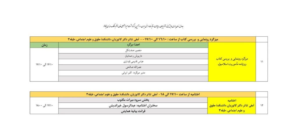 میزگرد رونمایی و بررسی کتاب + اختتامیه – 16:10 الی 17:10