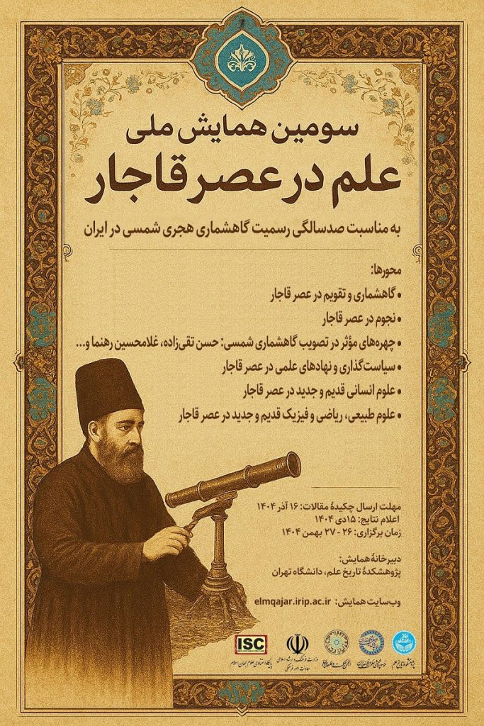 سومین همایش ملی «علم در عصر قاجار»، به مناسبت صدسالگی رسمیت گاهشماری هجری شمسی در ایران برگزار میشود.