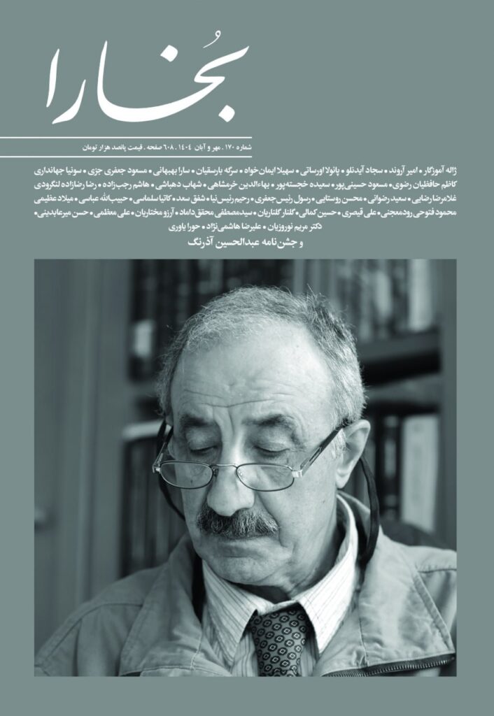 میراث مکتوب- یکصد و هفتادمین شمارۀ بخارا با تصویری از استاد عبدالحسین آذرنگ بر روی جلد در ۶۰۸ صفحه منتشر شد و از صبح سهشنبه هشتم مهرماه ۱۴۰۴ در کتابفروشیها و دکههای روزنامهفروشی در دسترس است.