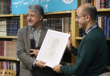 در بخش پایانی نشست طراحی یکی از هنرمندان از چهره دکتر ایرانی به وی تقدیم شد و حجتالاسلام مرقاتی کتاب آستان شمس تبریزی را به دکتر ایرانی هدیه کرد.